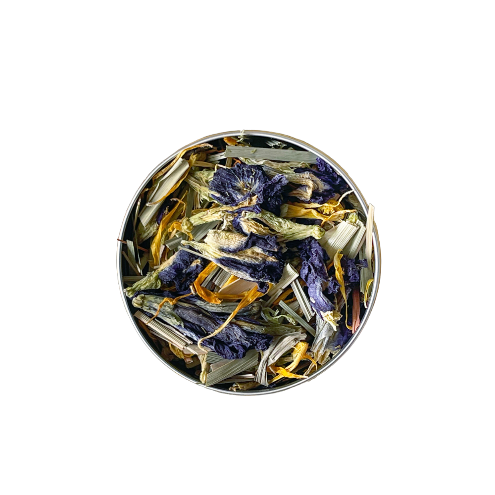 Immerse yourself in the tranquility of this caffeine-free tea, expertly crafted to transport you to a tropical oasis, no matter the weather outside. Each sip reveals a harmonious combination of butterfly pea flower, lemongrass, chamomile, rosehip, and the enticing aroma of mango combined with the exotic essence of lychee. While the vibrant blue color derived from butterfly pea flower adds a touch of magic to your tea ritual, the delicious taste will allow you to indulge in a moment of self-care. Allow Old Blue Eyes to be your companion on your journey towards wellness and mindfulness.